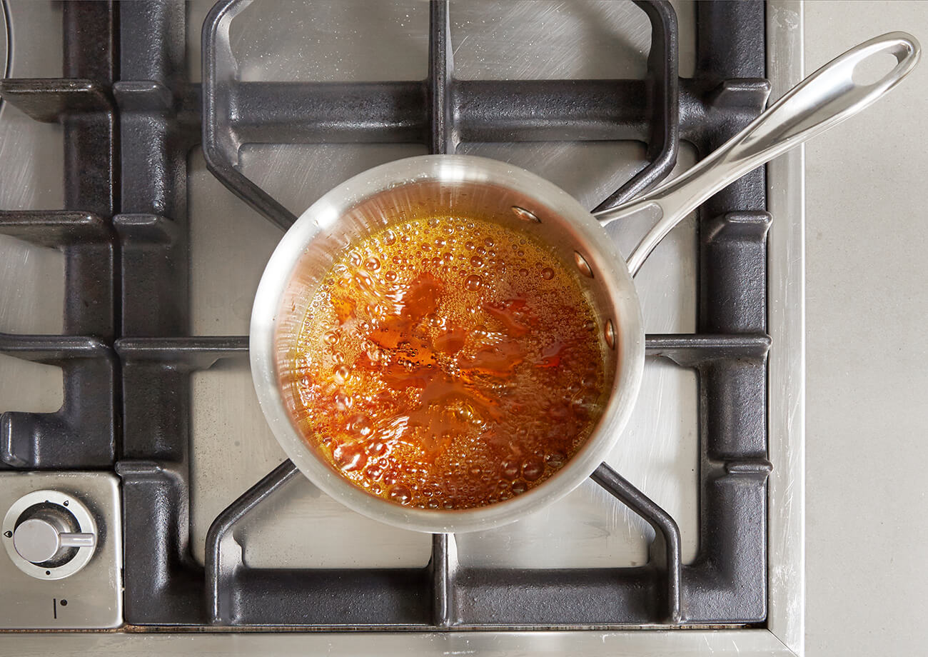 To heat food until sugars melt and turn a rich golden-brown color.