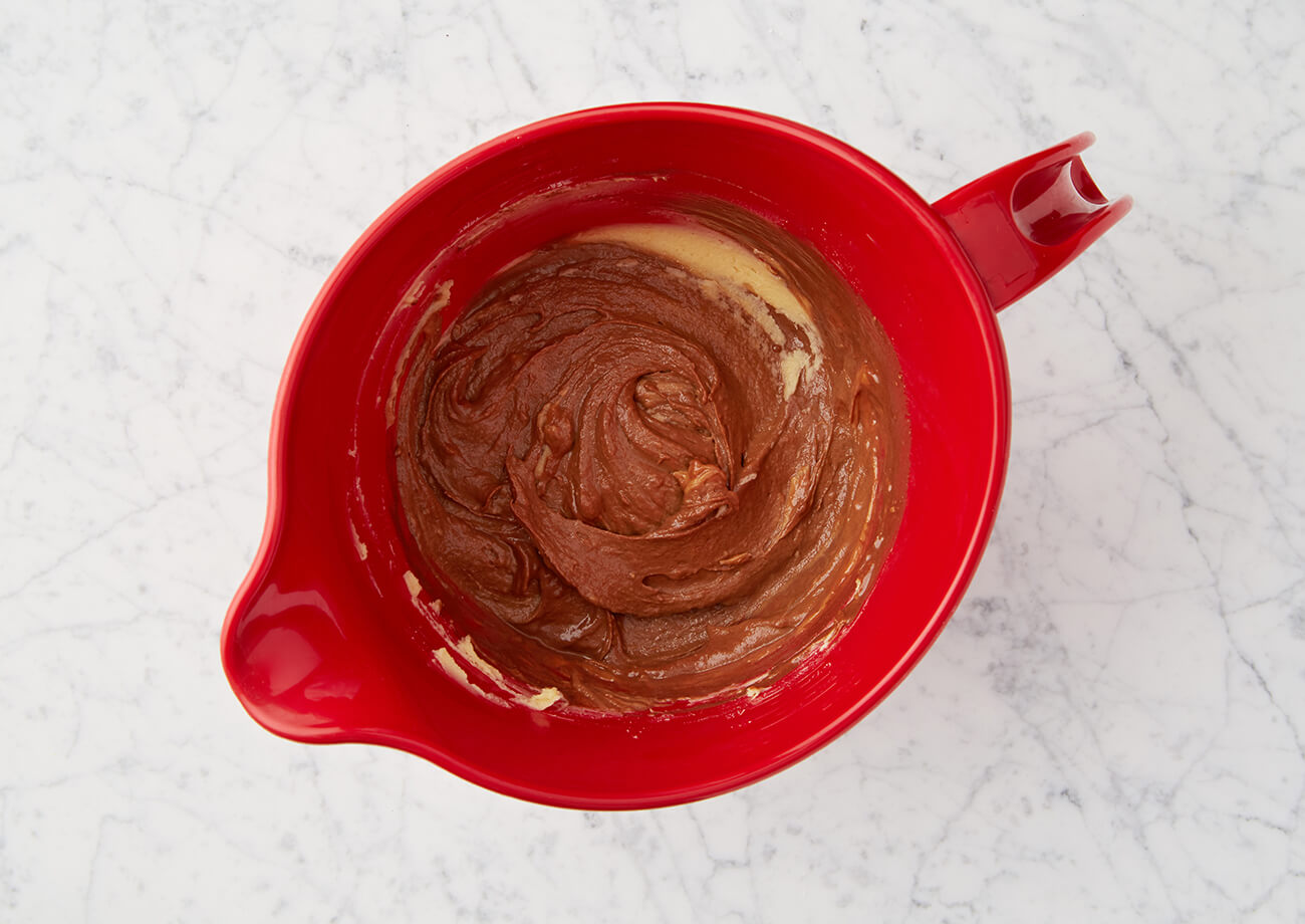 To stir together two or more ingredients until mixed.