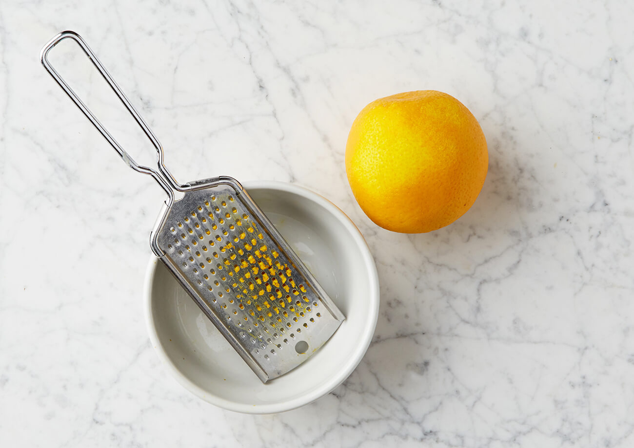 To grate the peel of citrus fruits such as lemons, limes, oranges, and grapefruits. This releases the concentrated flavors that reside in the oils of the fruit’s skin. Use the small angled-hole side of a box grater and rub lightly to avoid getting the white pith. For broader strips of zest, use a peeler or a sharp knife to cut away the skin.